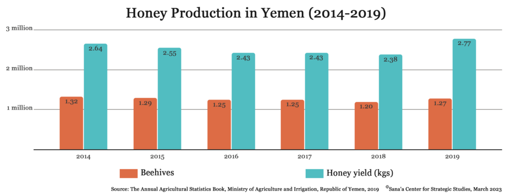 - Almost all these beekeepers depend on the occupation as their main source of income, in addition to those engaged in auxiliary work such as apiary workers, wardens, transport workers, bee traders and middlemen, and honey wholesalers and retailers. See “Beekeeping Value Chain: A Market Study with Potential Covid-19 Impact Analysis,” UNDP, August 2020, https://www.undp.org/sites/g/files/zskgke326/files/migration/arabstates/2020-Aug-13—Beekeeping-Market-Study.pdf